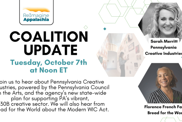 We welcome your financial support. Donate online or send a check to Community Foundation for the Alleghenies with “ReImagine Appalachia” in the memo line. You can send to 216 Franklin Street, Suite 400 Johnstown, PA 15901.