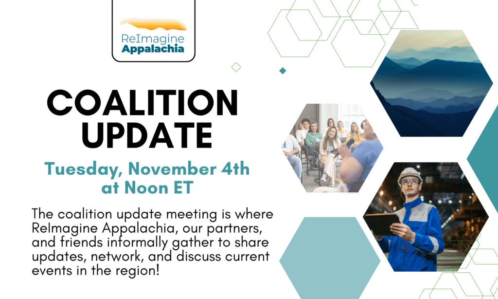 Tuesday, May 20th at noon ET via Zoom – The coalition update meeting is a fairly informal opportunity for ReImagine Appalachia to update our partners on upcoming events and hear from our partners on what they have going on. We typically hear a federal policy landscape update from National Wildlife Federation, followed by a presentation from a partner (slideshow optional) regarding a specific project they are working on, their work more generally, or something else that is relevant to leveraging federal resources. The all is representative of our coalition with an average of 50 attendees consisting of NGOs, local government officials, federal agency partners, labor leaders, grassroots volunteers, and more.