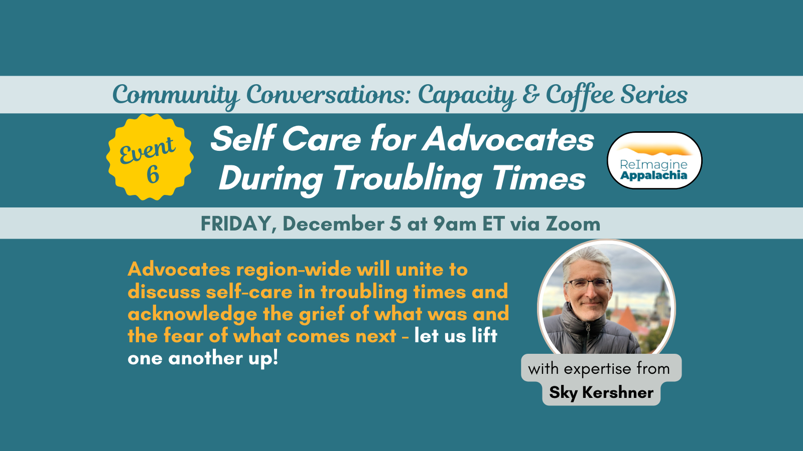 Friday, December 5th at 9 am ET via Zoom – Advocates from across the region joined to discuss how we can take care of ourselves during troubling times – and acknowledge the grief of what was and the fear of what comes next.