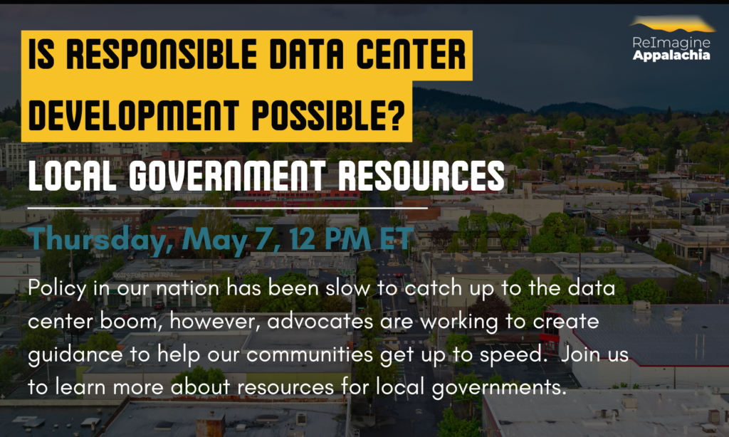 Thursday, May 7 12:00 PM ET via Zoom – Policy in our nation has been slow to catch up to the data center boom, however, advocates are working to create guidance to help our communities get up to speed. This webinar will include a range of options that municipalities can consider to address common data center concerns, including community benefit processes. What questions should communities ask when a data center comes to town? What preparations can they make in advance? Please join us!