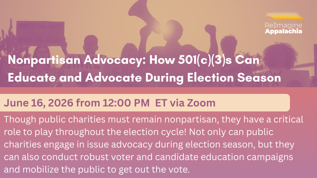 June 16 at 12 PM ET via Zoom – Join us to hear from Bolder Advocacy on nonprofit advocacy. Though public charities must remain nonpartisan, they have a critical role to play throughout the election cycle! Not only can public charities engage in issue advocacy during election season, but they can also conduct robust voter and candidate education campaigns and mobilize the public to get out the vote. After this session, you will have a better understanding of how to safely engage in nonpartisan advocacy during an election.